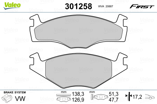 VALEO 301258 - Sada brzdových destiček, vždy 4 kusy v sadě