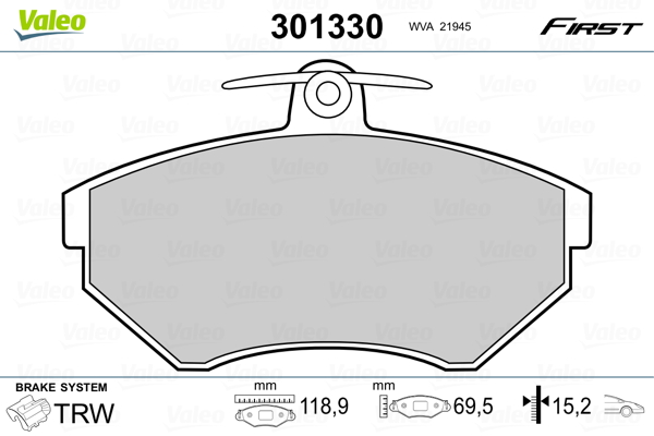 VALEO 301330 - Sada brzdových destiček, vždy 4 kusy v sadě