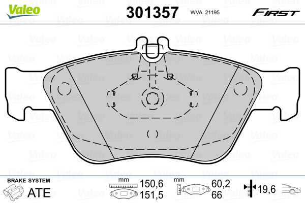 VALEO 301357 - Sada brzdových destiček, vždy 4 kusy v sadě