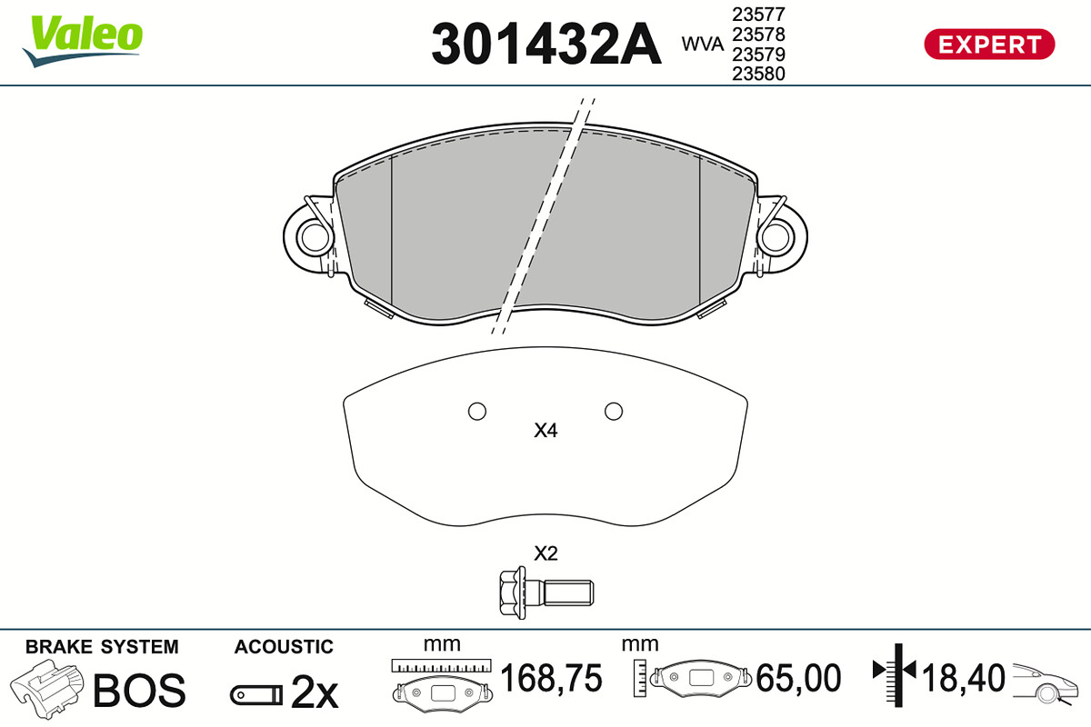 VALEO 301432A - Sada brzdových destiček, vždy 4 kusy v sadě