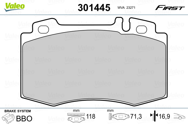 VALEO 301445 - Sada brzdových destiček, vždy 4 kusy v sadě