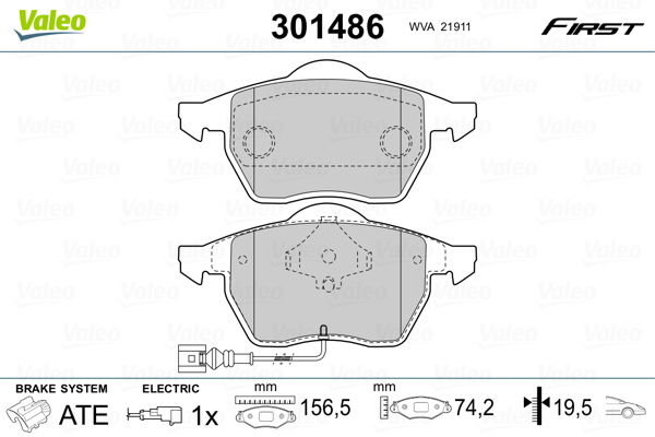 VALEO 301486 - Sada brzdových destiček, vždy 4 kusy v sadě