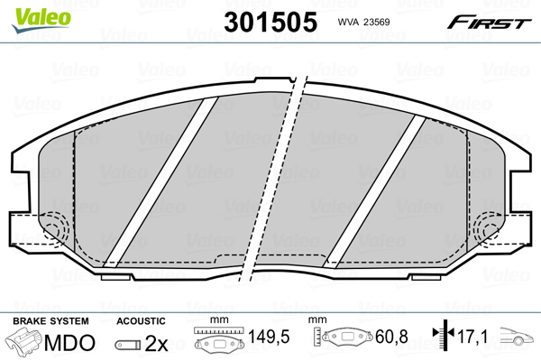 VALEO 301505 - Sada brzdových destiček, vždy 4 kusy v sadě