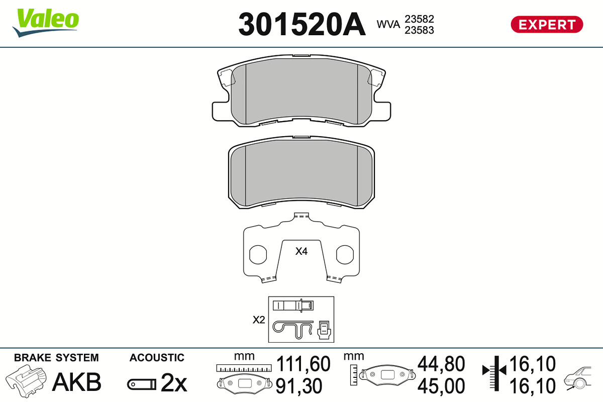 VALEO 301520A - Sada brzdových destiček, vždy 4 kusy v sadě