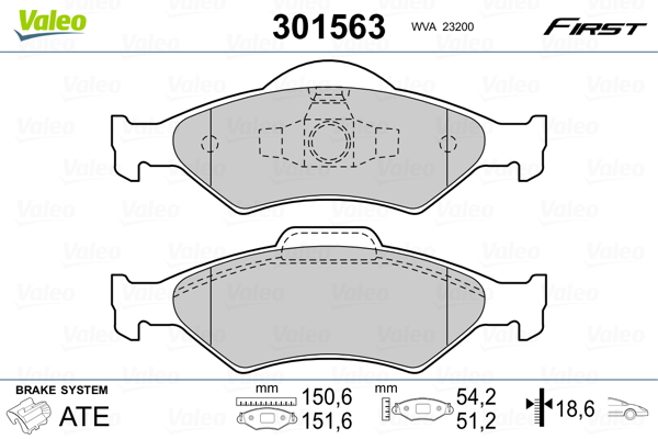 VALEO 301563 - Sada brzdových destiček, vždy 4 kusy v sadě
