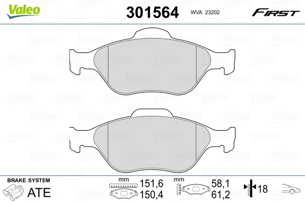 VALEO 301564 - Sada brzdových destiček, vždy 4 kusy v sadě