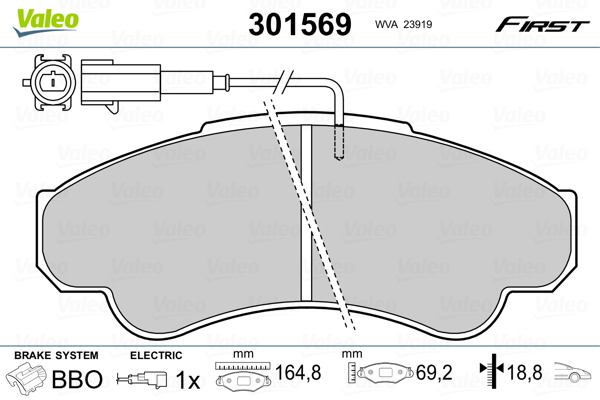 VALEO 301569 - Sada brzdových destiček, vždy 4 kusy v sadě
