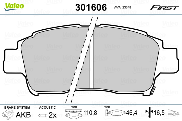 VALEO 301606 - Sada brzdových destiček, vždy 4 kusy v sadě