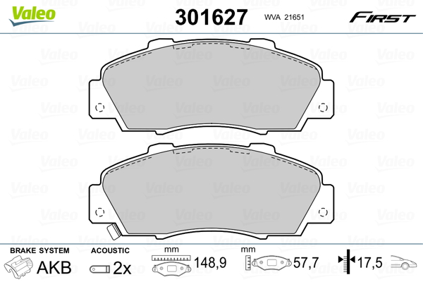 VALEO 301627 - Sada brzdových destiček, vždy 4 kusy v sadě