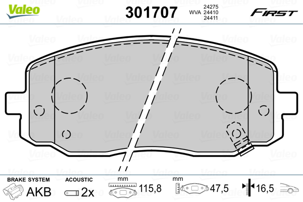 VALEO 301707 - Sada brzdových destiček, vždy 4 kusy v sadě