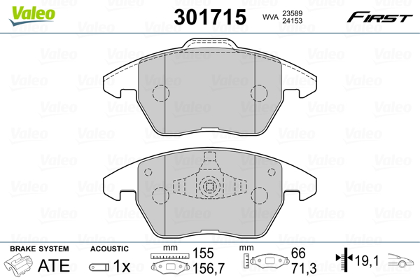 VALEO 301715 - Sada brzdových destiček, vždy 4 kusy v sadě