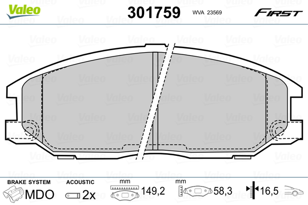 VALEO 301759 - Sada brzdových destiček, vždy 4 kusy v sadě