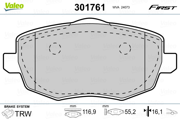 VALEO 301761 - Sada brzdových destiček, vždy 4 kusy v sadě