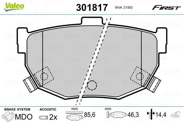 VALEO 301817 - Sada brzdových destiček, vždy 4 kusy v sadě