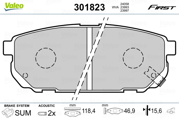 VALEO 301823 - Sada brzdových destiček, vždy 4 kusy v sadě