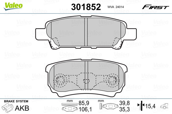 VALEO 301852 - Sada brzdových destiček, vždy 4 kusy v sadě