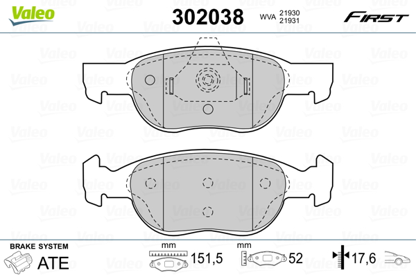 VALEO 302038 - Sada brzdových destiček, vždy 4 kusy v sadě