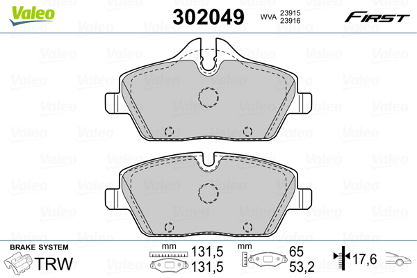 VALEO 302049 - Sada brzdových destiček, vždy 4 kusy v sadě
