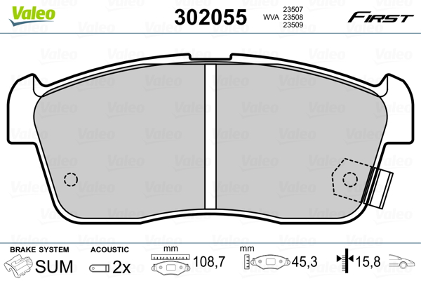 VALEO 302055 - Sada brzdových destiček, vždy 4 kusy v sadě