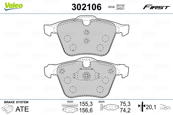 VALEO 302106 - Sada brzdových destiček, vždy 4 kusy v sadě
