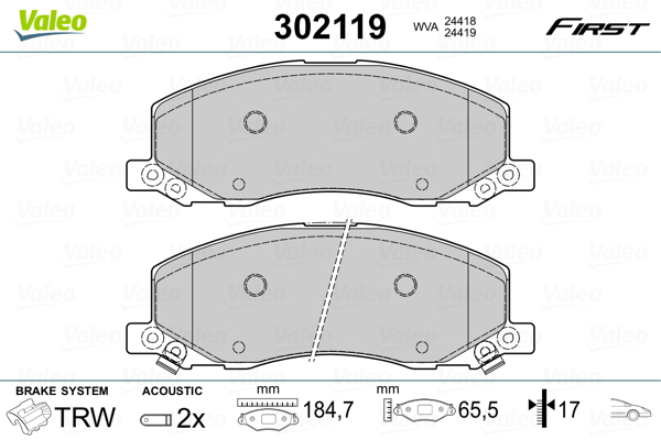 VALEO 302119 - Sada brzdových destiček, vždy 4 kusy v sadě