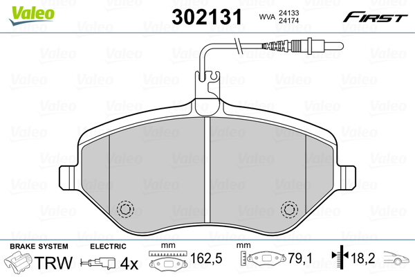 VALEO 302131 - Sada brzdových destiček, vždy 4 kusy v sadě