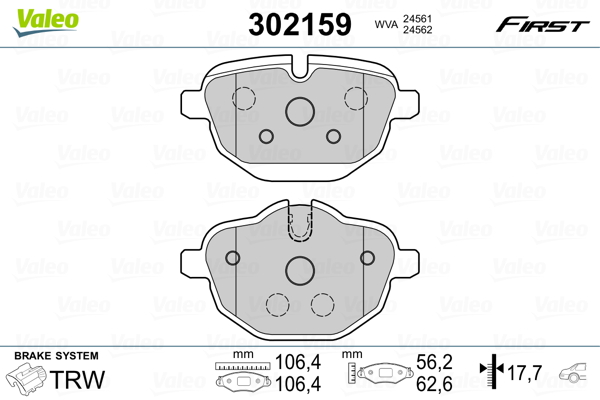 VALEO 302159 - Sada brzdových destiček, vždy 4 kusy v sadě