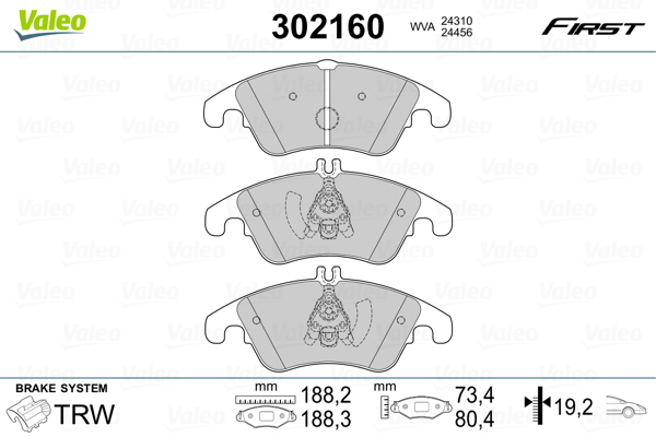 VALEO 302160 - Sada brzdových destiček, vždy 4 kusy v sadě
