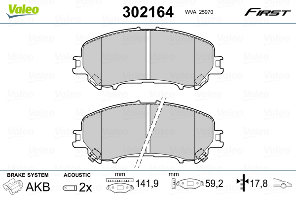 VALEO 302164 - Sada brzdových destiček, vždy 4 kusy v sadě