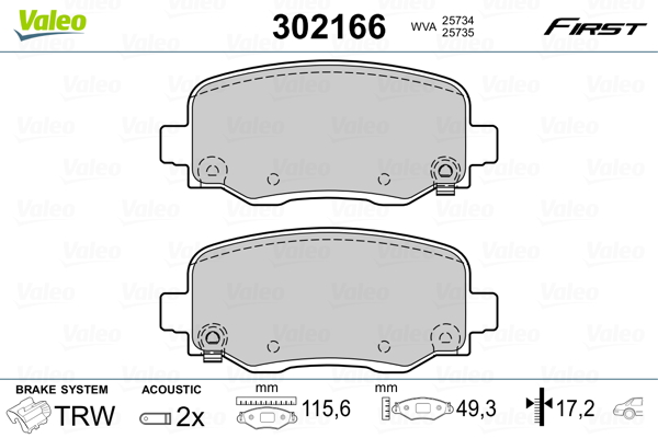 VALEO 302166 - Sada brzdových destiček, vždy 4 kusy v sadě