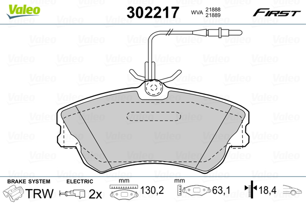 VALEO 302217 - Sada brzdových destiček, vždy 4 kusy v sadě