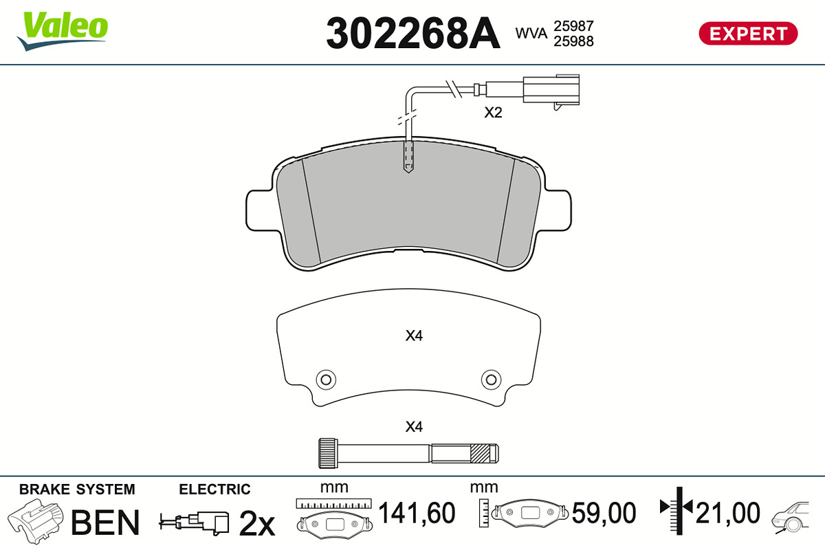 VALEO 302268A - Sada brzdových destiček, vždy 4 kusy v sadě
