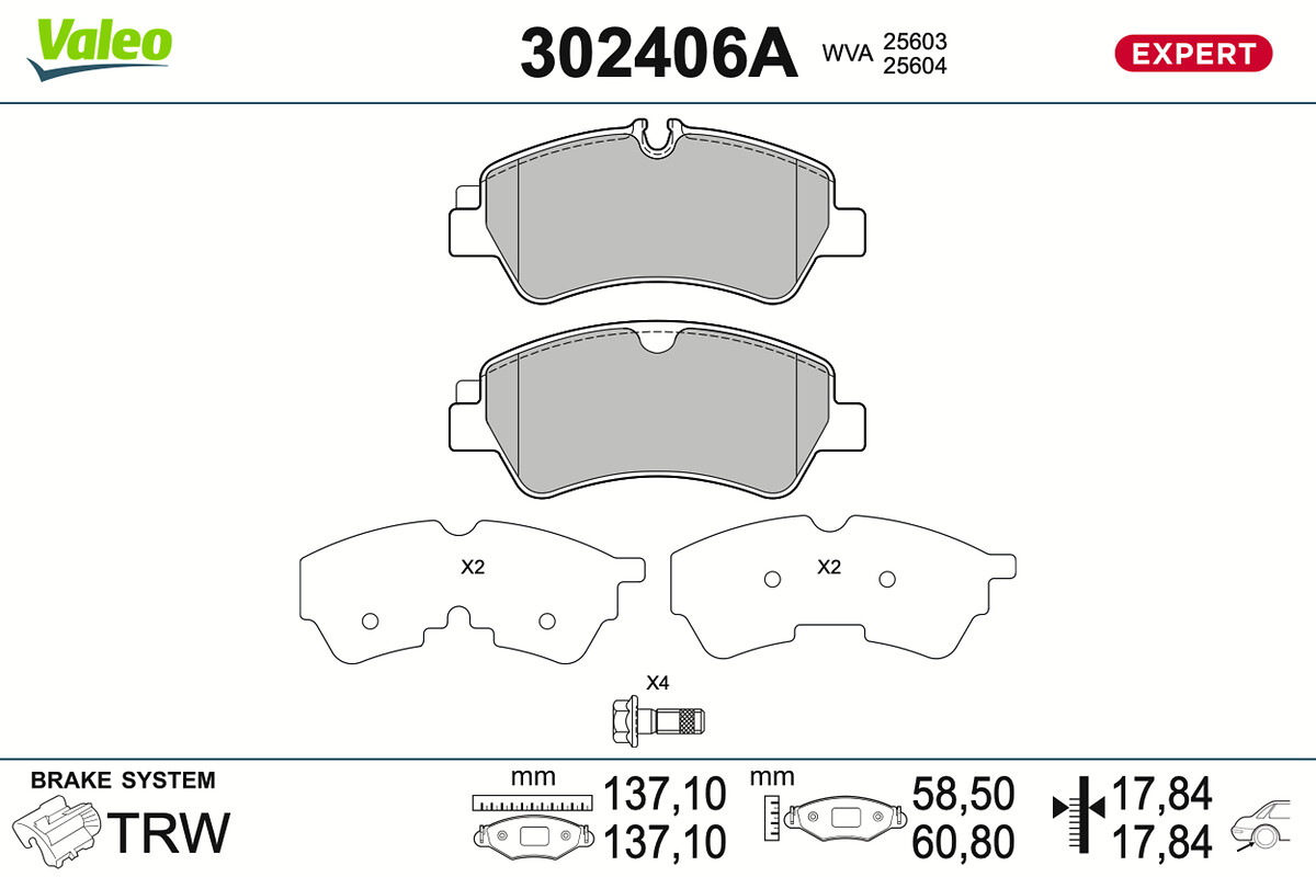 VALEO 302406A - Sada brzdových destiček, vždy 4 kusy v sadě