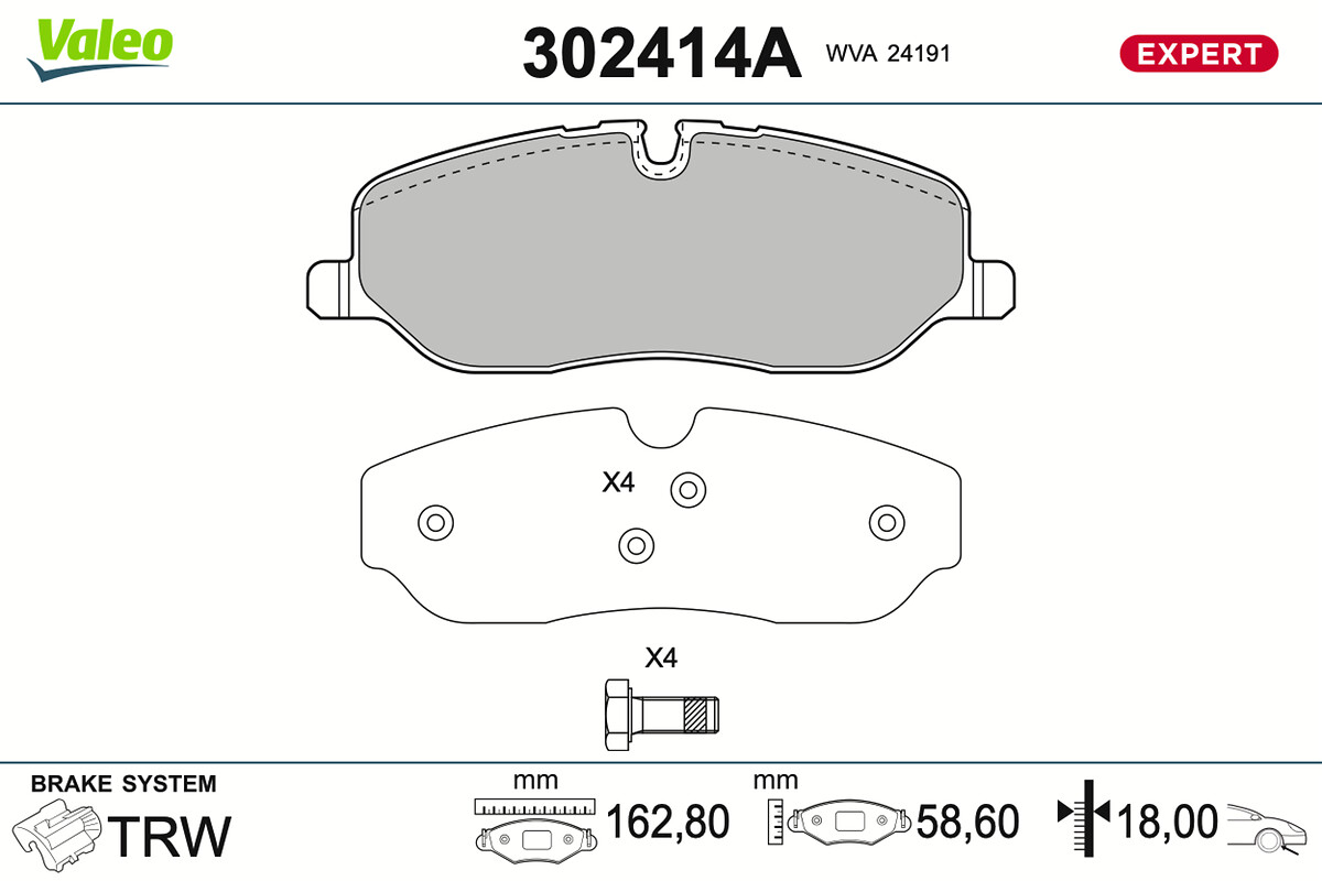 VALEO 302414A - Sada brzdových destiček, vždy 4 kusy v sadě