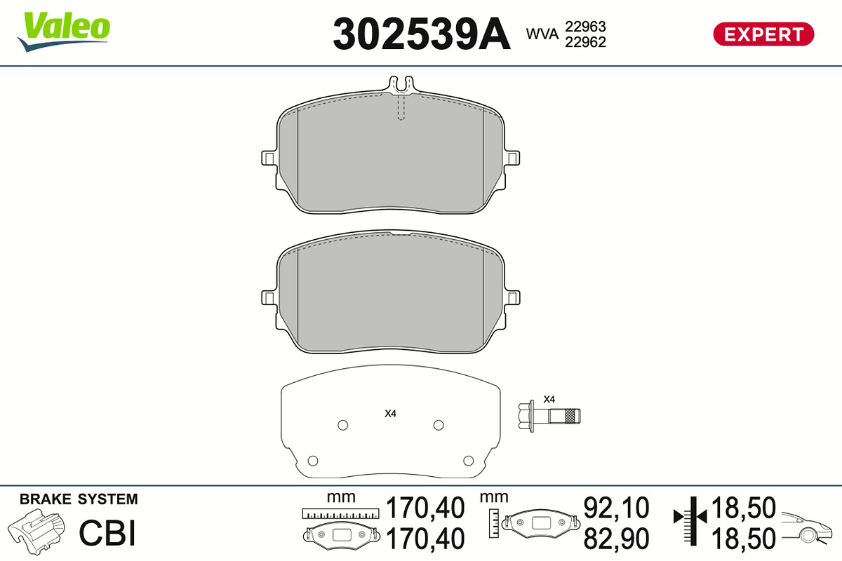 VALEO 302539A - Sada brzdových destiček, vždy 4 kusy v sadě