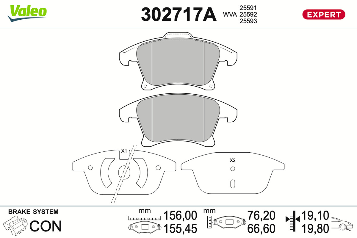 VALEO 302717A - Sada brzdových destiček, vždy 4 kusy v sadě