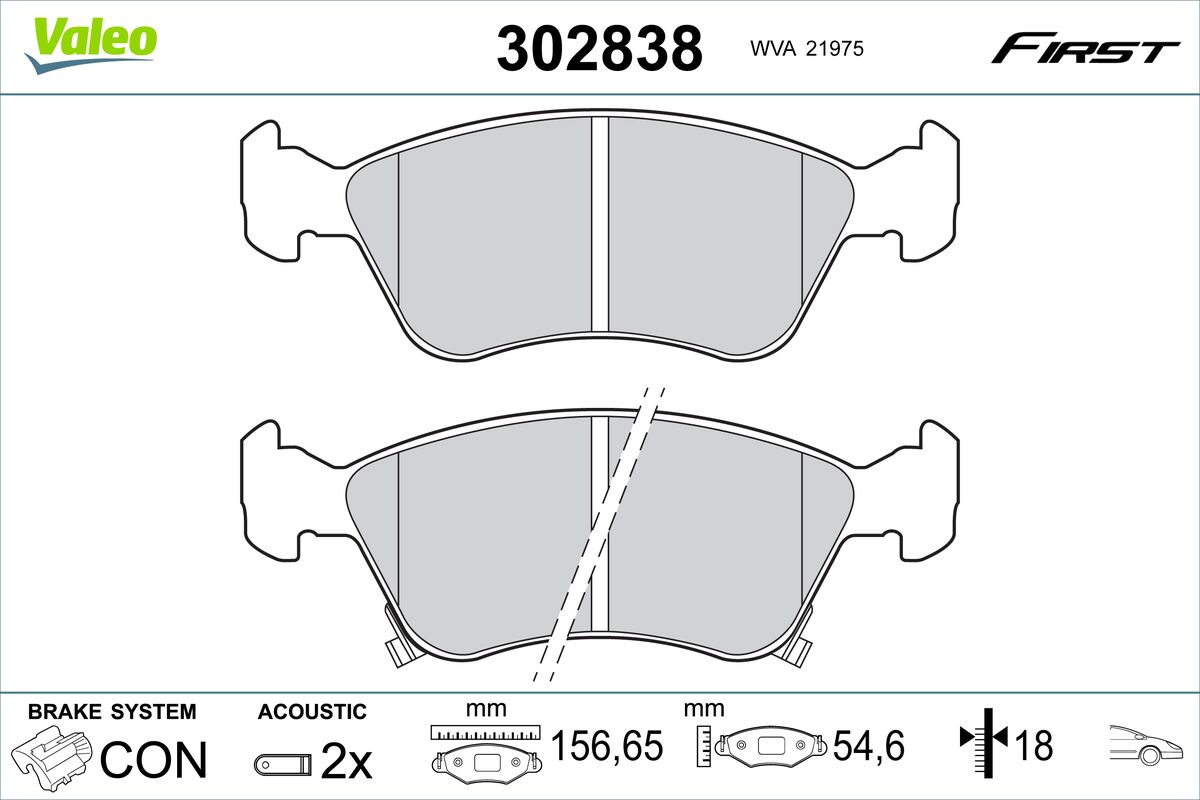 VALEO 302838 - Sada brzdových destiček, vždy 4 kusy v sadě