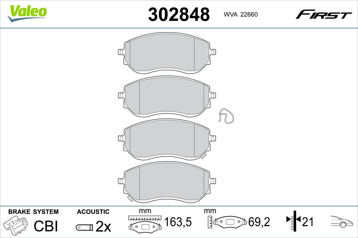 VALEO 302848 - Sada brzdových destiček, vždy 4 kusy v sadě