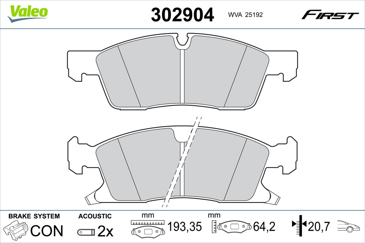VALEO 302904 - Sada brzdových destiček, vždy 4 kusy v sadě