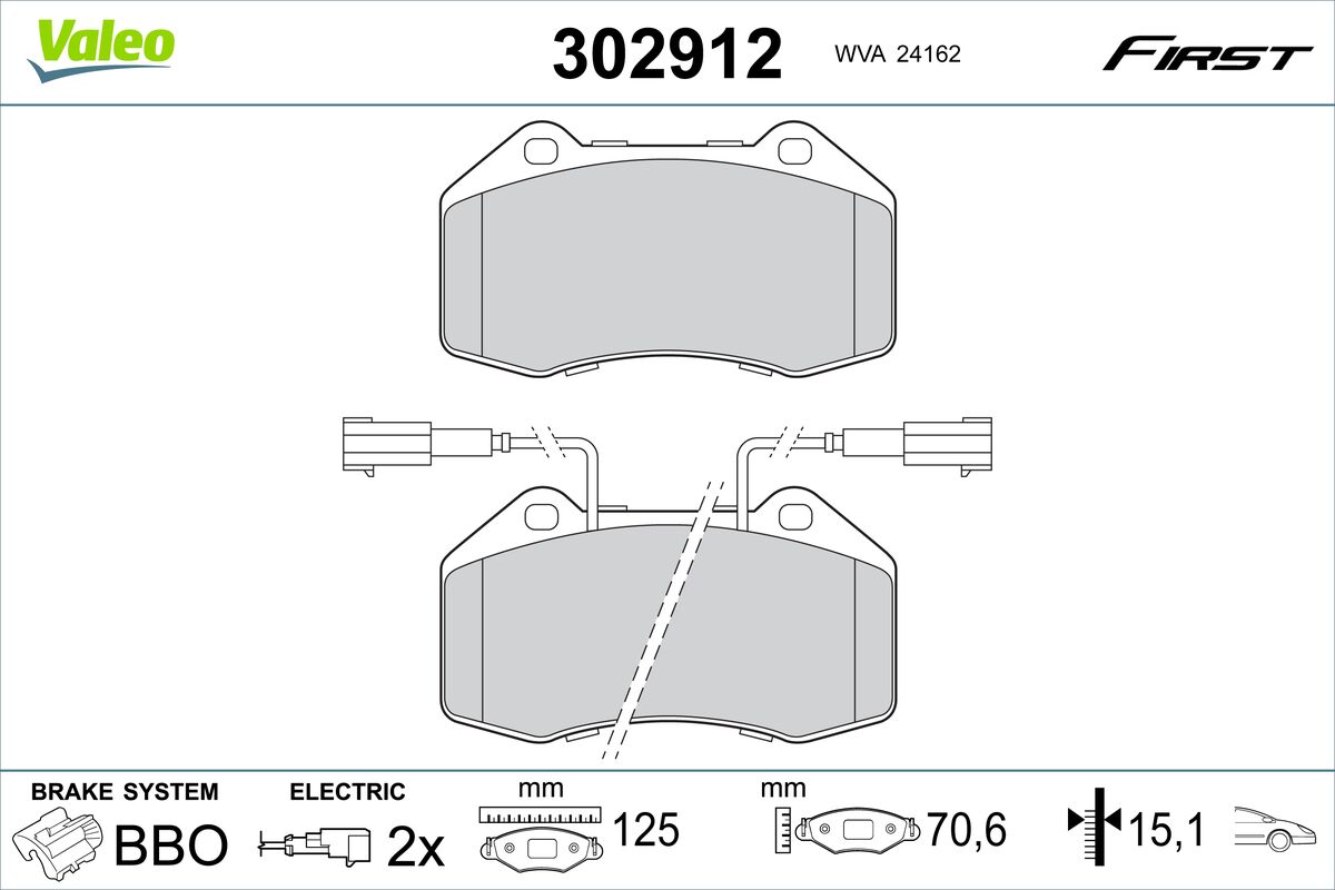 Pro náhradní díl VALEO 302912 - Sada brzdových destiček, vždy 4 kusy v sadě bohužel aktuálně nemáme náhradu.