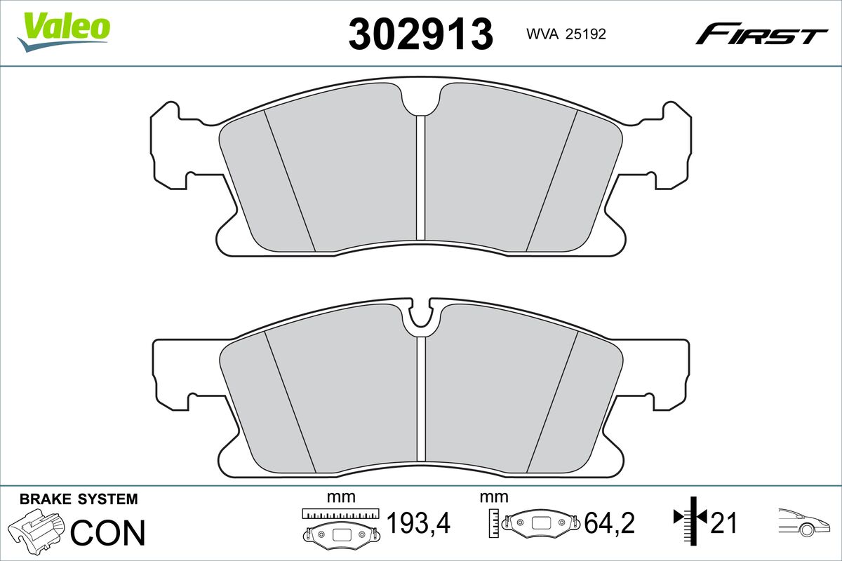 VALEO 302913 - Sada brzdových destiček, vždy 4 kusy v sadě