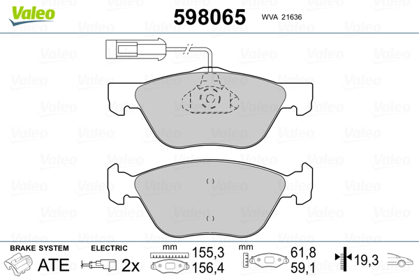 VALEO 598065 - Sada brzdových destiček, vždy 4 kusy v sadě
