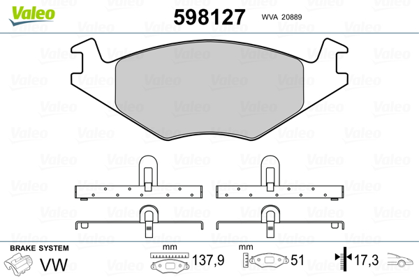 VALEO 598127 - Sada brzdových destiček, vždy 4 kusy v sadě