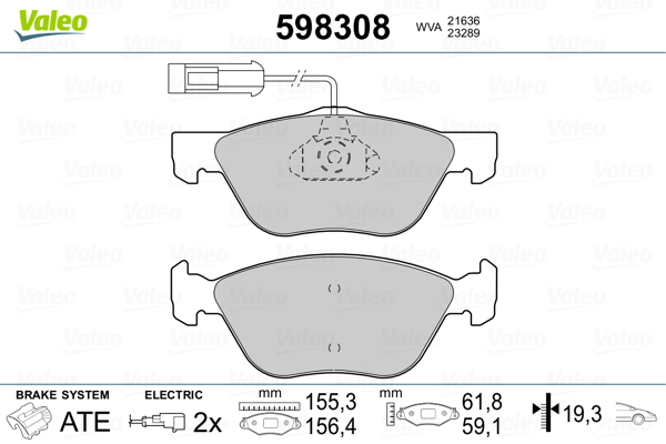 VALEO 598308 - Sada brzdových destiček, vždy 4 kusy v sadě