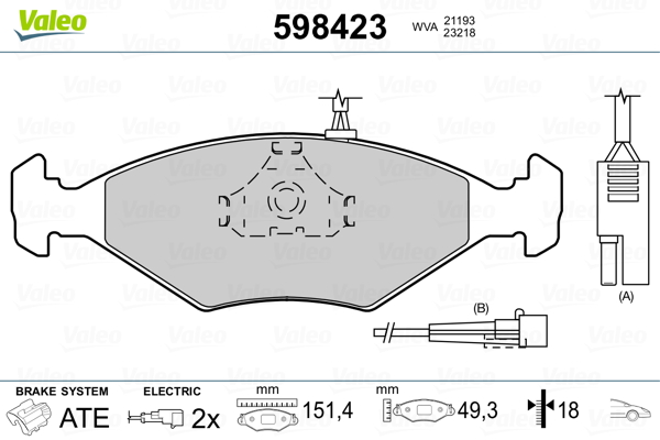 VALEO 598423 - Sada brzdových destiček, vždy 4 kusy v sadě