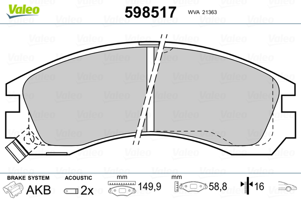 VALEO 598517 - Sada brzdových destiček, vždy 4 kusy v sadě