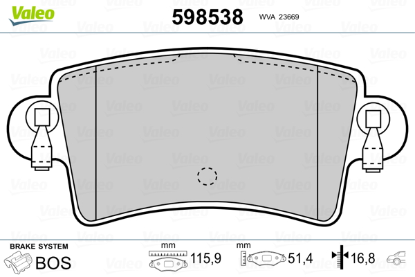 VALEO 598538 - Sada brzdových destiček, vždy 4 kusy v sadě