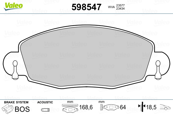 VALEO 598547 - Sada brzdových destiček, vždy 4 kusy v sadě