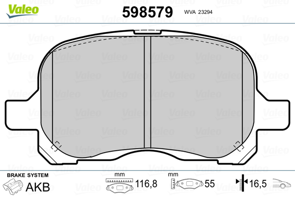 VALEO 598579 - Sada brzdových destiček, vždy 4 kusy v sadě