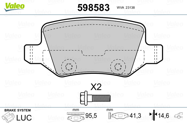 VALEO 598583 - Sada brzdových destiček, vždy 4 kusy v sadě